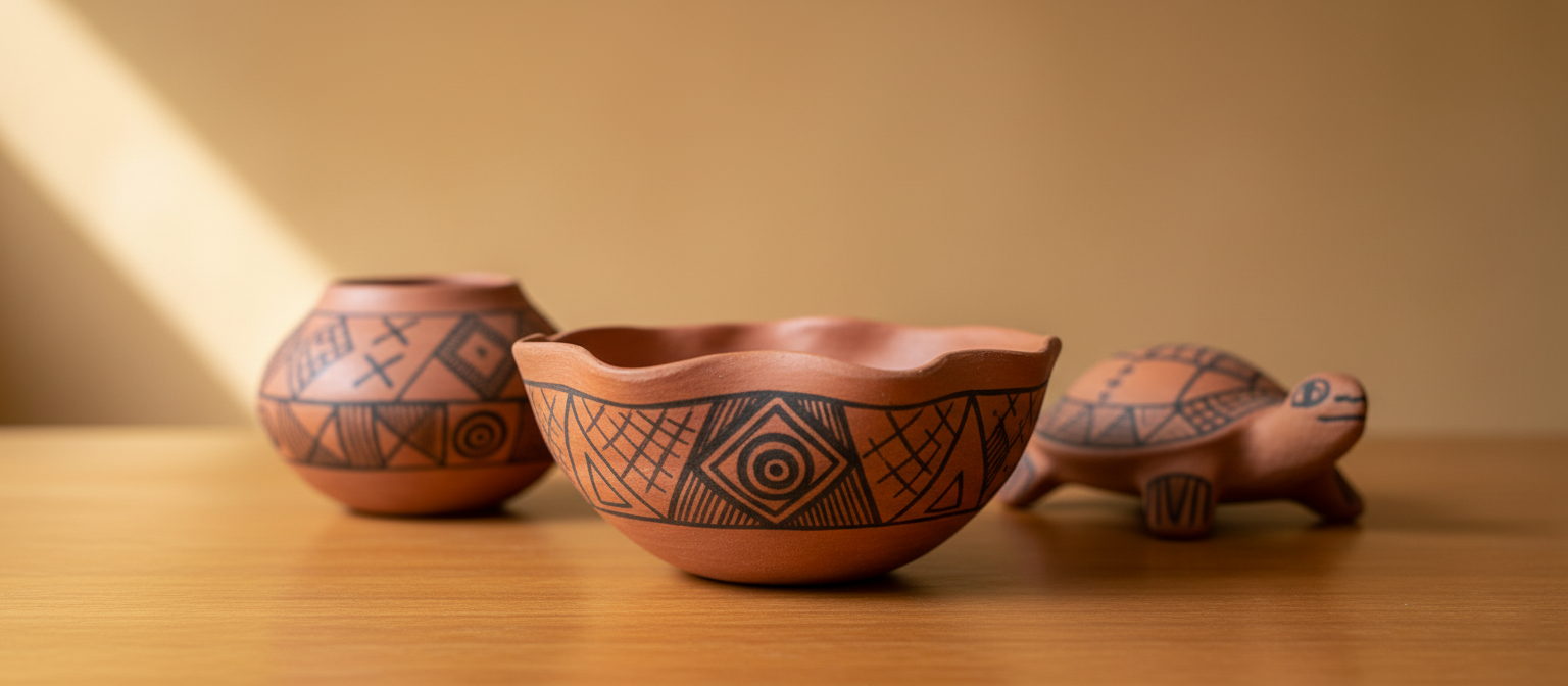 Cada pieza es un testimonio vivo de la Amazonía. Descubre mokawas, muitz y cuencos elaborados a mano por mujeres Achuar, donde el barro, el fuego y los símbolos ancestrales se transforman en arte y memoria.